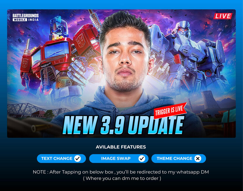 Hi , I’m Shivansh — Welcome to Trigger Gfx Store – Where Creativity Meets Precision.At Trigger Gfx Store, we specialize in delivering high-quality digital graphics, custom designs, Thumbnail Templates, Banner Templates, Overlays and creative resources tailored for individuals, brands, and businesses looking to make an impact. Whether you're a content creator, entrepreneur, gamer, or designer, we provide the visual tools you need to stand out.What started as a passion for design quickly evolved into a full-fledged digital store driven by innovation and a commitment to excellence. Every design we offer is crafted with attention to detail, originality, and style—so you can confidently express your brand or personal aesthetic.What We Offer:→Premium graphic templates
